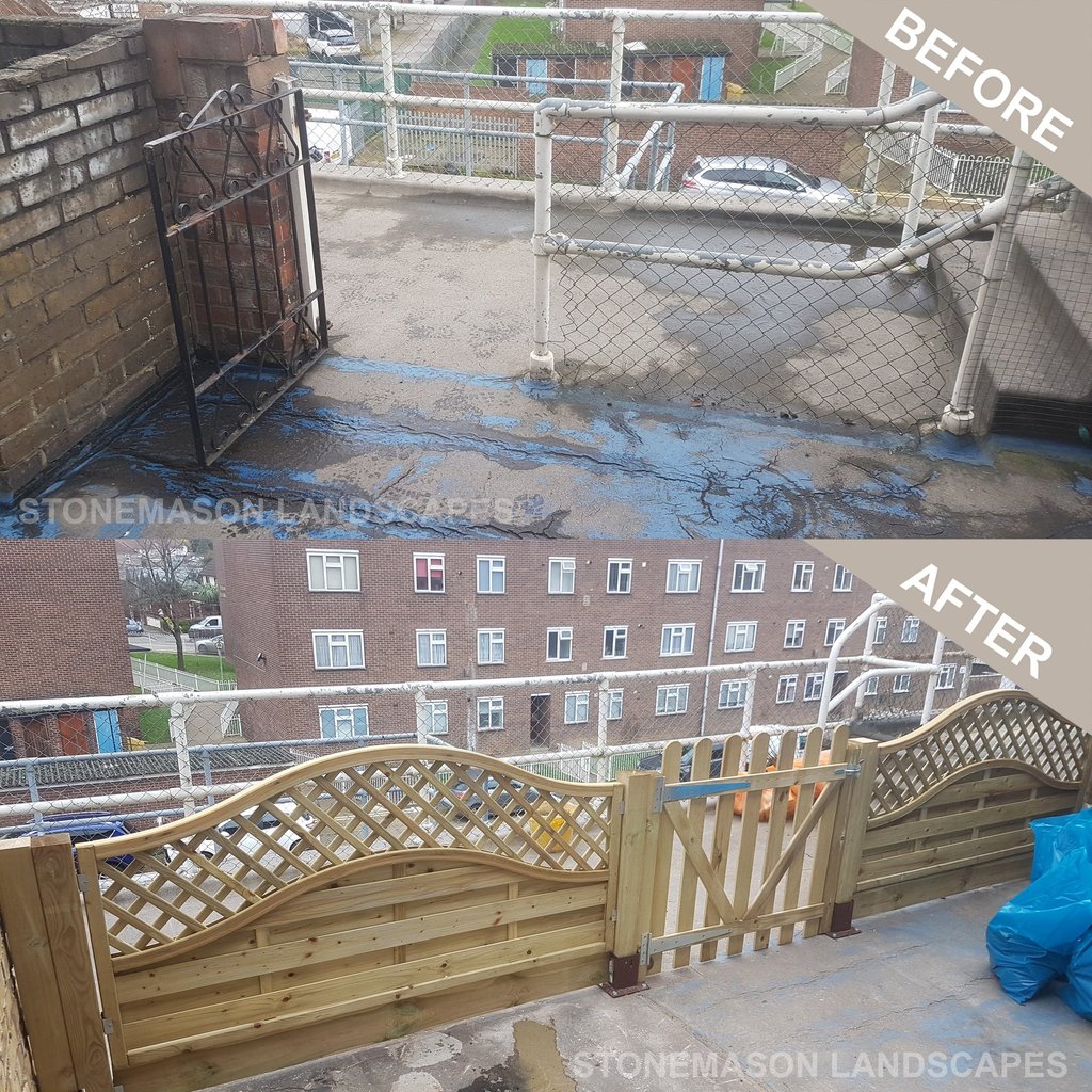 This one took 4 flights of stairs to get resources, materials and waste to and from the project location, it may be enough to put some fence installers off...