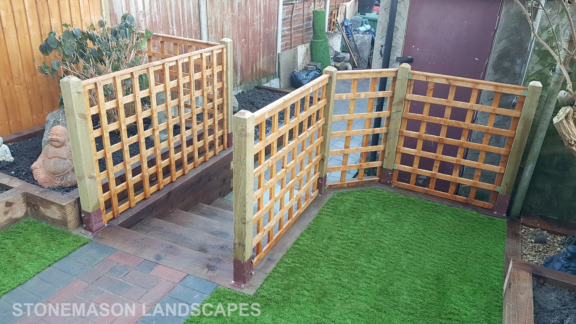 We raised and levelled this garden but it left a bit of a dangerous drop for the elderly resident of the home so we installed this custom trellis fence for safety and acts as a great focal point for the small garden.